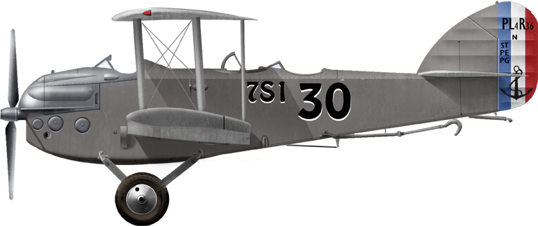 Few aircraft manufacturers have been as inextricably linked to the history of carrier-based aviation as was Levasseur, focusing on the sole aircraft carrier Béarn, in service from 1927 to 1939. It could be assimilated (loosely) to a "French Grumman" but had largely fallen into oblivion despite some remarkable aircraft using purely marine solutions, such as their trademark boat-like fuselage belly. These were rugged biplane that could act as light bomber, reconnaissance or even two-seat escort fighters. The first first largely adopted was the Levasseur PL.4. 40 were manufactured once it entered service in 1927, just as the Béarn did. Not very fast at 175 km/h (109 mph, 94 kn) over the sea, and a not impressive range of 900 km or 5h autonomy, it was a 3 seater with observer and rear-gunner powered by a Lorraine 12Eb Courlis W-12 Wtcp 450 h engine. They started to be replaced from 1937 by the PL.10.
