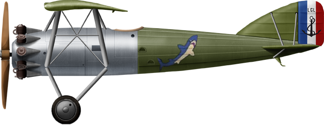 From 1925, Gourdou-Leseurre was absorbed by Loire shipyard and the fighter LGL.32 was the only one pushed for serial contruction, primarily for the army, explorted and declined into a multitude of variants. Powered by Gnrome-Rhone 9Ady engine with two synchronized 7.7 mm nose MGs and flying first in 1925, the naval aviation later received 15 C1 versions intended for for the Aicraft Carrier Béarn. By 1935, retired from the air force, it soldiered on in the Navy modernized with a "V" landing gear to carry a 100 kg belly bomb and maintained on the Béarn until replaced by the Dewoitine D376, another parasol fighter.