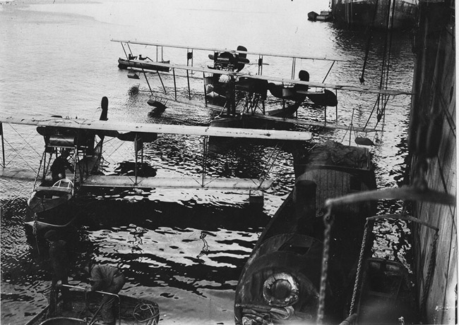 In 1916, M-9 flying boats took part in an interresting development for the Russian Naval Aviation, deployed on the seaplane carriers and tenders "Imperator Nikolai I" (5,642 GRT) and "Imperator Aleksandr I" (5,133 GRT), based in Sevastopol and Odessa respectively, to bring long range reconnaissance to the fleet. They replaced in this role the M-5 seaplanes or remained for a time alongside them. These ships could carry between seven and eight of these totam. They made their combat debut on August 25, 1916, taking part in a fleet sortie against the Bulgarian port of Varna, in which three seaplane carriers took par, the two Imperiators and Almaz. An air-sea battle broke out, in the air on the Russian side, led by four over a total of 20 embarked (12 M-5s and 8 M-9s in common). Aaccording to the Russians, three enemy aircraft were shot down, but their conceded own lost. Subsequent operations saw the M-9 making reconnaissance missions of the Constanța and Bosporus areas in March–April 1917, the bombardment of Sinope on May 24–27, 1917, by the "Aviator" (former "Imperial Nikolai I"). Modified M9 to carry an extra passenger or two, and cargo, flew in and out during the blockade of Turkish coalfields in the Eregli–Zonguldak area. They also attacked coal depots and mining/loading facilities from the air, securing fleet and shipping operations against Central Powers submarines.