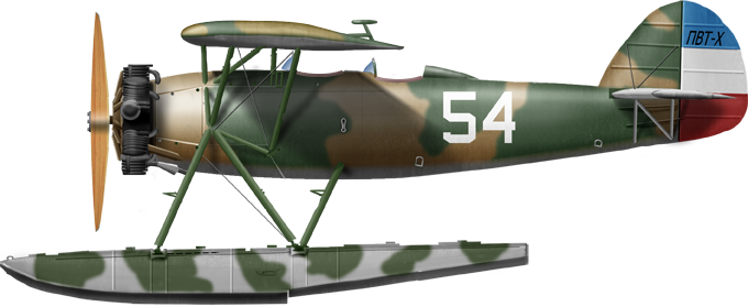 As for the four PVT-H seaplanes of the Royal Yugoslavian Navy, they were deployed to the Divulje and Boka bases, flying until the April Invasion. They had a role of trainer at first, but the Navy intended to use them for observation, and their two machine guns was a bonanza but they were vulnerable to rear attacks and even slower and les agile than the regular PVTs, reducing their survivability. The Italians captured two PVT-H but there is no information about their use. Neither the German or Croatians flew the PVT-H. The PVT-H appearance is deduced from a few photos. They had a camouflage made of standard army beige and olive green, including the floats, probably on a grey base. The tail had the tricolor, with horizontal bands like army models, with the code "PVT-X" on the tail and a unit number.